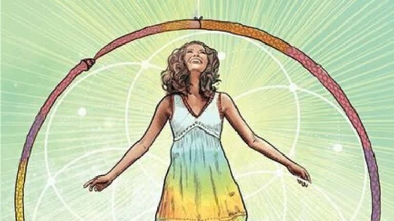 - 智慧的君王: 畫面中心是一位白髮、蓄著落腮鬍的男性,神情深邃且充滿權威感。他隨意地坐在岩石上,而非金屬王座,這象徵他的權威並非來自武力或地位,而是來自他對真理與自然的深度理解。
